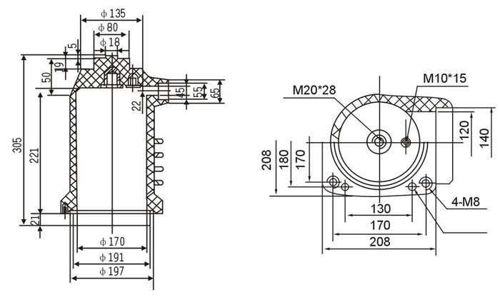 觸頭盒為環(huán)氧樹(shù)脂APG工藝壓力凝膠成型結(jié)構(gòu),用于各種手車(chē)式開(kāi)關(guān)柜,起絕緣隔離和聯(lián)接過(guò)渡作用。