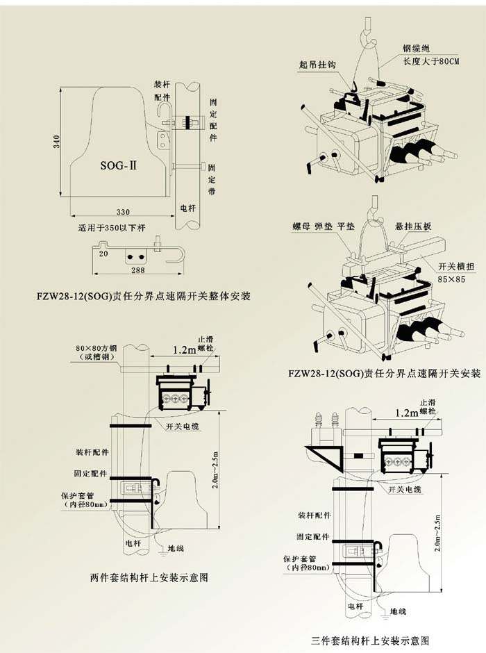 分界負(fù)荷開(kāi)關(guān)由FZW28—12真空負(fù)荷開(kāi)關(guān)和控制器兩大部分組成,通過(guò)航空插座及戶外密封控制電纜進(jìn)行電氣連接。能可靠判斷檢測(cè)界內(nèi)外的毫安的零序電流及相間斷路電流,可適宜不同中性點(diǎn)接地方式的配電系統(tǒng)。