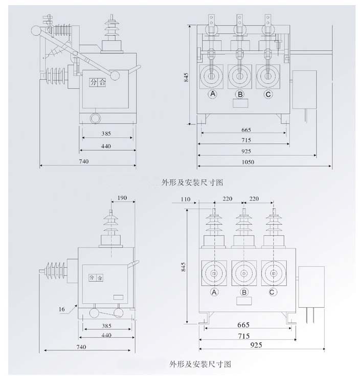 4.開關(guān)本體可內(nèi)置PT,PT各相均有保險,安裝方便,運(yùn)行安全可靠。